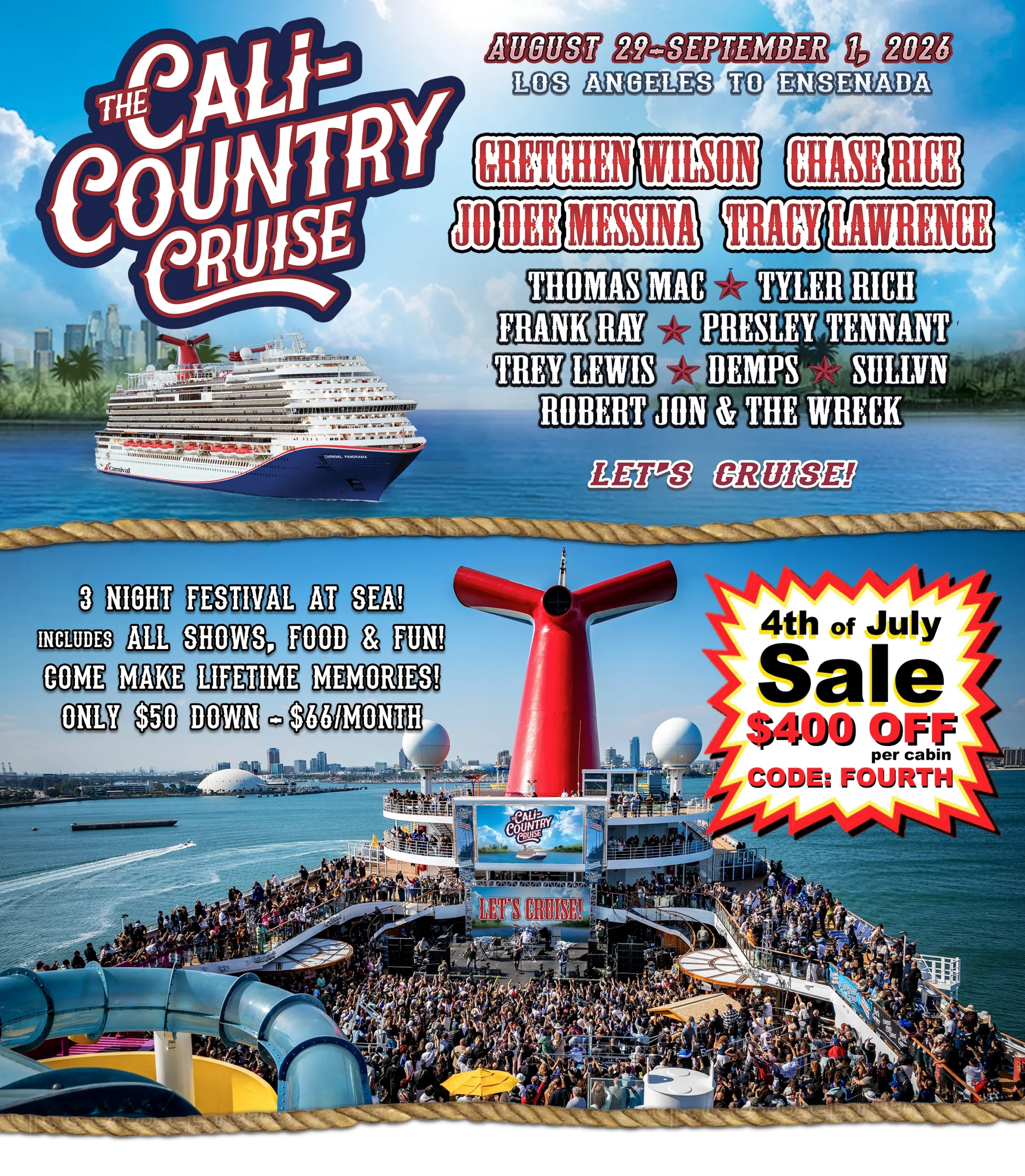Cali-Country Cruise 2026 is the ultimate celebration of music and fun. Your ticket includes live